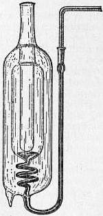 § 3. Method of Cooling.—A common example of this method is the determination of the specific heat of a liquid by filling a small calorimeter with the liquid, raising it to a convenient temperature, and then setting it to cool in an enclosure at a steady temperature, and observing the time taken to fall through a given range when the conditions have become fairly steady. The same calorimeter is afterwards filled with a known liquid, such as water, and the time of cooling is observed through the same range of temperature, in the same enclosure, under the same conditions. The ratio of the times of cooling is equal to the ratio of the thermal capacities of the calorimeter and its contents in the two cases. The advantage of the method is that there is no transference or mixture; the defect is that the whole measurement depends on the assumption that the rate of loss of heat is the same in the two cases, and that any variation in the conditions, or uncertainty in the rate of loss, produces its full effect in the result, whereas in the previous case it would only affect a small correction. Other sources of uncertainty are, that the rate of loss of heat generally depends to some extent on the rate of fall of temperature, and that it is difficult to take accurate observations on a rapidly falling thermometer. As the method is usually practised, the calorimeter is made very small, and the surface is highly polished to diminish radiation. It is better to use a fairly large calorimeter to diminish the rate of cooling and the uncertainty of the correction for the water equivalent. The surface of the calorimeter and the enclosure should be permanently blackened so as to increase the loss of heat by radiation as much as possible, as compared with the losses by convection and conduction, which are less regular. For accurate work it is essential that the liquid in the calorimeter should be continuously stirred, and also in the enclosure, the lid of which must be water-jacketed, and kept at the same steady temperature as the sides. When all these precautions are taken, the method loses most of the simplicity which is its chief advantage. It cannot be satisfactorily applied to the case of solids or powders, and is much less generally useful than the method of mixture.