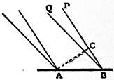 2. Shadows.—In the infancy of the undulatory theory the objection most frequently urged against it was the difficulty of explaining the very existence of shadows. Thanks to Fresnel and his followers, this department of optics is now precisely the one in which the theory has gained its greatest triumphs. The principle employed in these investigations is due to C. Huygens, and may be thus formulated. If round the origin of waves an ideal closed surface be drawn, the whole action of the waves in the region beyond may be regarded as due to the motion continually propagated across the various elements of this surface. The wave motion due to any element of the surface is called a secondary wave, and in estimating the total effect regard must be paid to the phases as well as the amplitudes of the components. It is usually convenient to choose as the surface of resolution a wave-front, i.e. a surface at which the primary vibrations are in one phase. Any obscurity that may hang over Huygens’s principle is due mainly to the indefiniteness of thought and expression which we must be content to put up with if we wish to avoid pledging ourselves as to the character of the vibrations. In the application to sound, where we know what we are dealing with, the matter is simple enough in principle, although mathematical difficulties would often stand in the way of the calculations we might wish to make. The ideal surface of resolution may be there regarded as a flexible lamina; and we know that, if by forces locally applied every element of the lamina be made to move normally to itself exactly as the air at that place does, the external aerial motion is fully determined. By the principle of superposition the whole effect may be found by integration of the partial effects due to each element of the surface, the other elements remaining at rest.