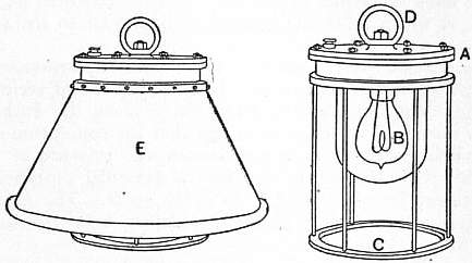C, Stand, which also protects the globe. D, Ring for suspending lamp. E, Reflector. |