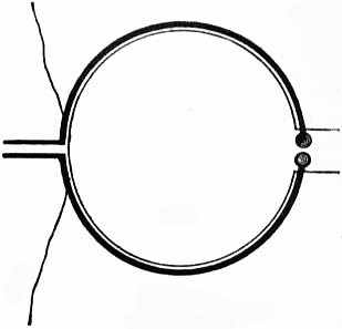 If we make one of the circuits, ADB, consist of a short length of a high liquid resistance, so that S is large and N small, and the other circuit ACB of a low metallic resistance bent to have considerable self-induction, the preceding equation becomes approximately p = S/L, so that when S and L are known p is readily determined.